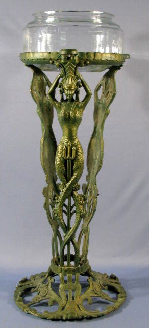 Cast iron fish bowl stand w/fish design: